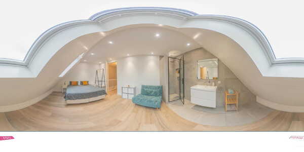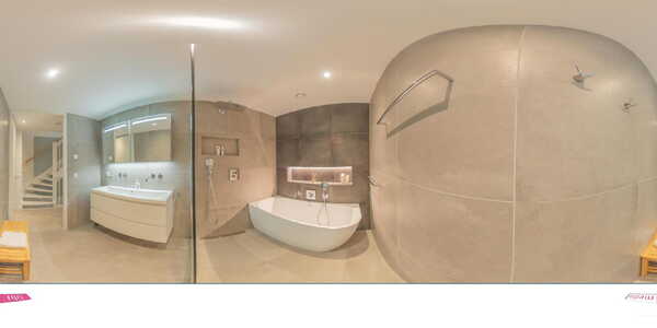 De stijlvolle badkamer doet denken aan een luxe hotelsuite. Geniet van een dubbele wastafel, een vrijstaand ligbad en een inloopdouche. Daarnaast is er een apart Japans toilet. Ook deze verdieping is volledig voorzien van vloerverwarming en hoogwaardige tegelvloer.