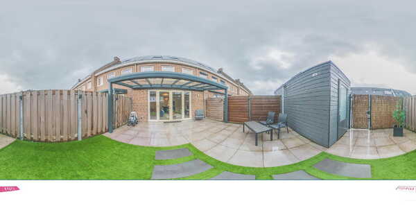 De uitgebouwde woonkamer is een heerlijke plek om te ontspannen, met een lichte tegelvloer met vloerverwarming en twee openslaande deuren naar de zonnige tuin op het zuidoosten. De onderhoudsarme tuin is strak betegeld met keramische tegels en heeft een gezellige veranda waar u tot in de late uurtjes kunt genieten. Achter in de tuin staat een ruime schuur en via de achterom bereikt u de twee privéparkeerplaatsen.