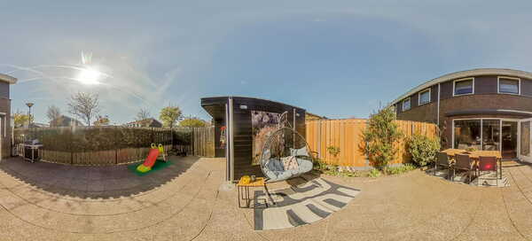 De achtertuin is keurig aangelegd, onderhoudsvrij en gelegen op het noordwesten – dat betekent volop middag- en avondzon. Dankzij het elektrisch zonnescherm zit je altijd lekker, in zon of schaduw.