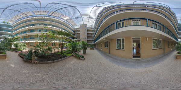 U komt binnen in de mooie, centrale entree van het gebouw via de trap of een van de hellingbanen. Aan de binnenzijde bevinden zich de brievenbussen, het bellentableau en de intercom waardoor u in het gebouw heel veilig woont. Het atrium met een schitterende, goed onderhouden binnentuin is een plek waar bewoners elkaar ontmoeten en de Vereniging van Eigenaren regelmatig activiteiten (niet verplicht) organiseert.