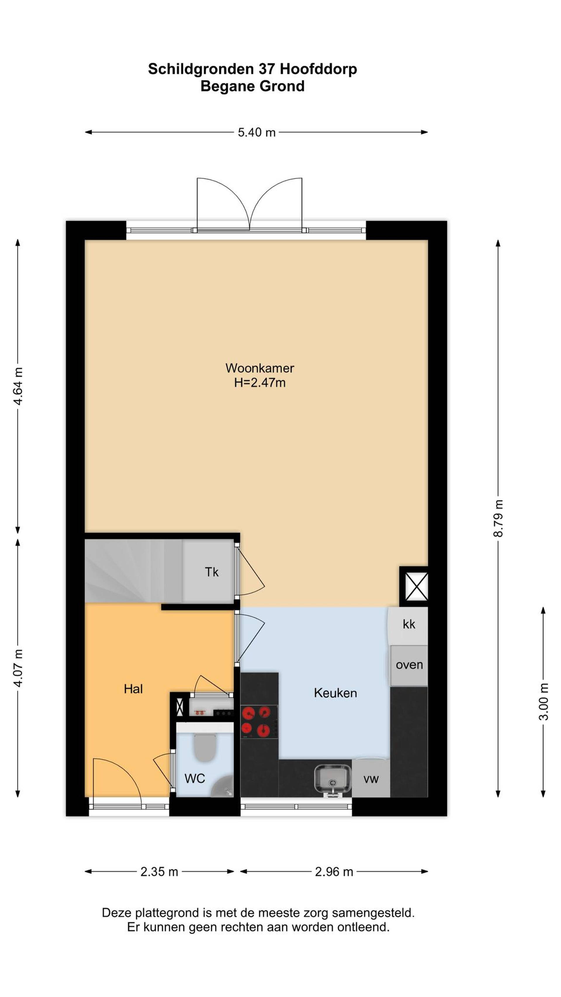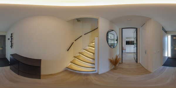 Via de voortuin komt u binnen in de hal. In de meterkast is een waterfilter geplaatst en de wanden zijn afgewerkt met spachtelputz. Ook de binnendeuren op de begane grond zijn vernieuwd en de trap (2020) met ledverlichting is echt een lust voor het oog. Rechts in de hal is de nette toiletruimte met fonteintje. De pvc-vloer met vloerverwarming loopt door van de hal naar de woonkamer en keuken.