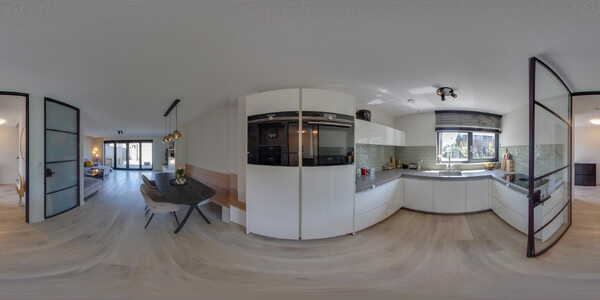 Aan de voorzijde van de woning bevindt zich de luxe keuken (2020) in een mooie U-opstelling met een composiet blad en voorzien van alle benodigde inbouwapparatuur: een inductie kookplaat met afzuiging, een vaatwasser, koelkast, vriezer, koffiemachine, stoomoven, warmhoudlade en een heet waterkraan. Voor de inbouwapparatuur is alleen maar gekozen voor A-merken; een kookplaat van Bora, heet waterkraan van Grohe en alle overige inbouwapparatuur is van Siemens Studioline. Vanuit de keuken heeft u vrij uitzicht naar de rustige straat. U kunt hier optimaal genieten en hoeft voorlopig niet te denken aan een verbouwing.