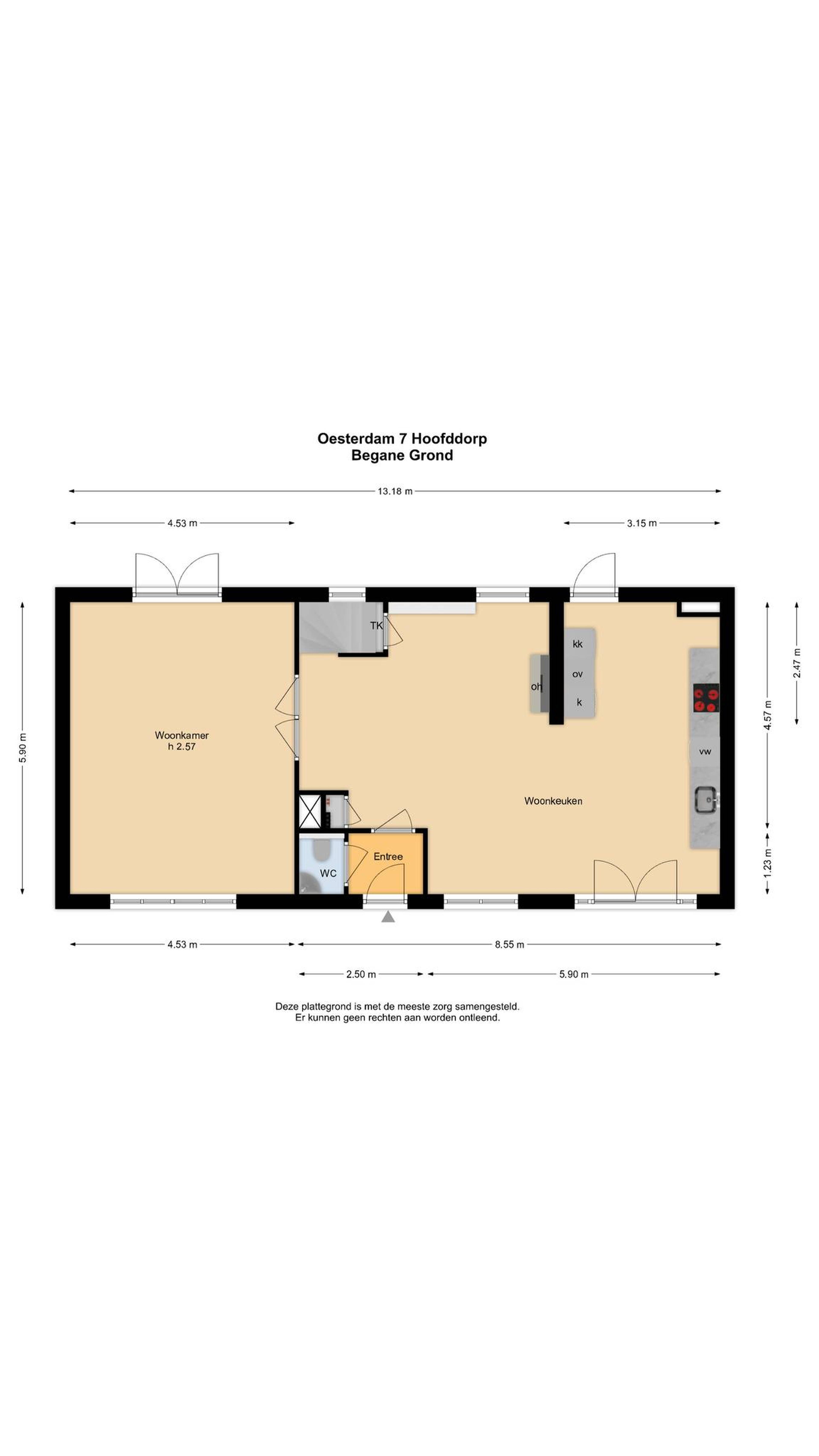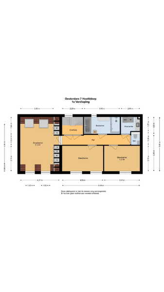 Via de entree, centraal gelegen in de woning, kom je in de hal waar zich tevens het toilet bevindt. Vanuit hier heb je toegang tot de sfeervolle en royale woon-/eetkamer, die is voorzien van gestucte wanden en een fraaie witte houten vloer. Aan de rechterzijde van de woning bevindt zich de moderne open woonkeuken.