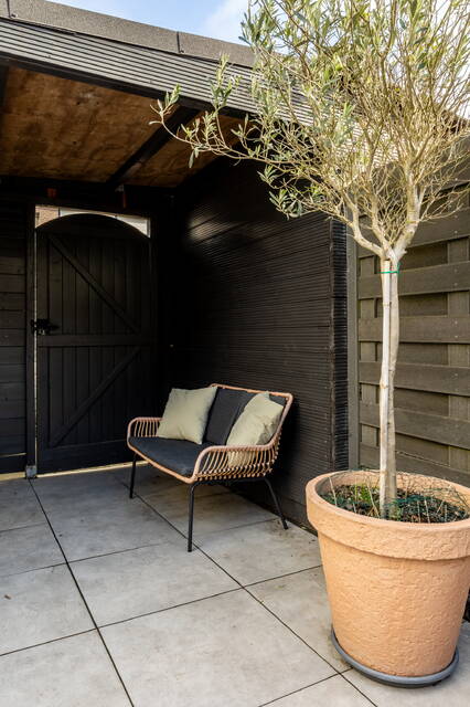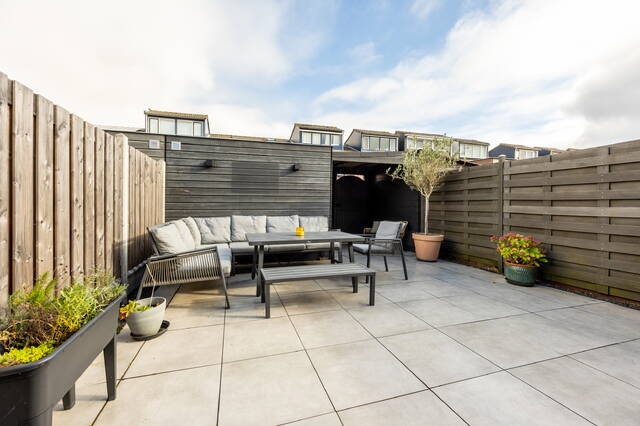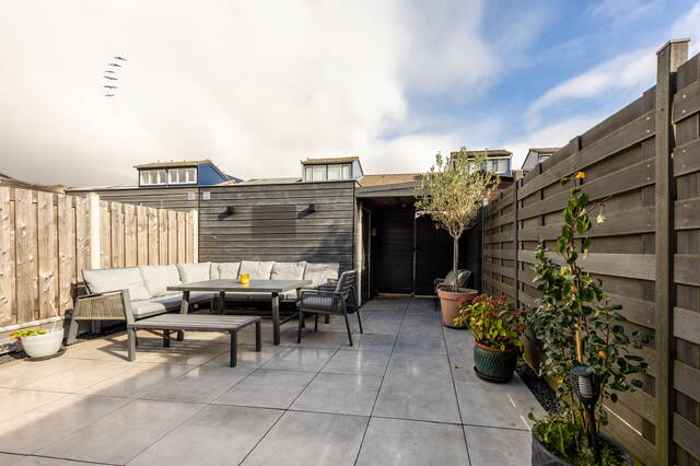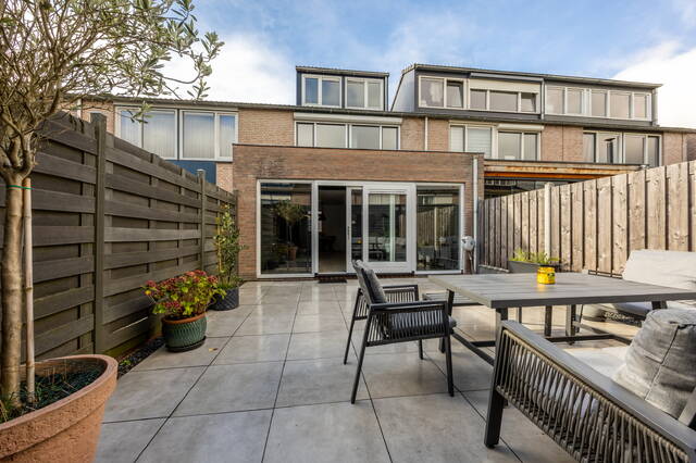 Via de schuifpui stap je direct de verzorgde achtertuin welke is vernieuwd in 2021 in, gelegen op het noordoosten. De tuin is onderhoudsvriendelijk aangelegd, biedt veel privacy en beschikt over een achterom en een ruime berging.