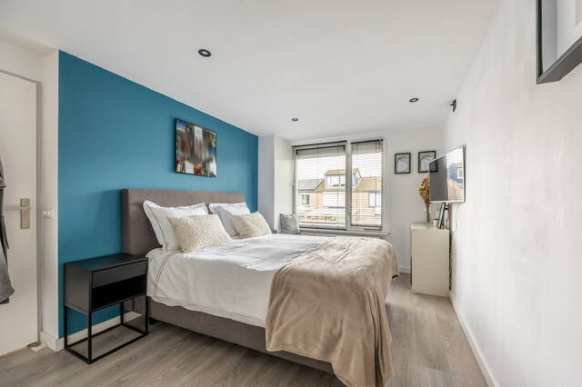 Ook de eerste verdieping is smaakvol afgewerkt. Via de overloop zijn drie slaapkamers en de badkamer bereikbaar. De kamers zijn voorzien van een laminaatvloer en gestucte wanden, wat zorgt voor een rustige en verzorgde uitstraling.