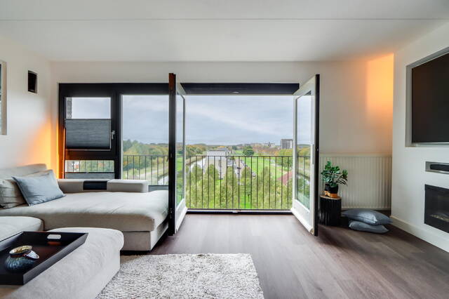 Het Franse balkon is gelegen op het zuidwesten. Op zonnige dagen kun je de openslaande deuren wijd openen en genieten van een heerlijk buitengevoel met een prachtig, vrij uitzicht.