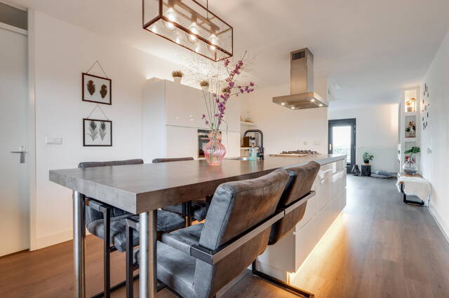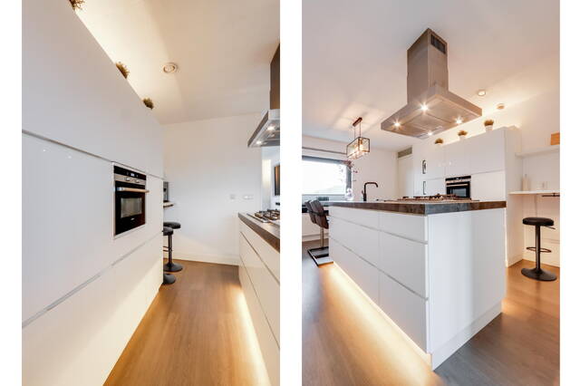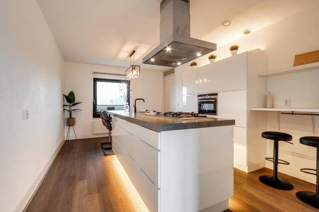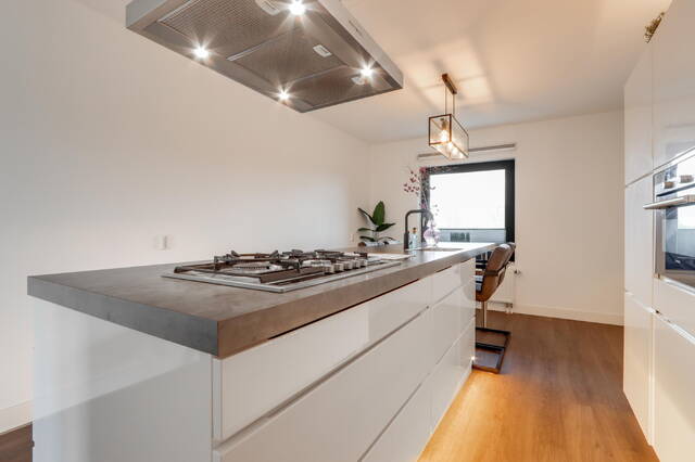 De royale keuken is uitgerust met een kookeiland en een praktische wandopstelling met veel bergruimte. Daarnaast is de keuken voorzien van diverse inbouwapparatuur, waaronder een vaatwasser, combi oven, koel-vriescombinatie, 4-pits gaskookplaat met wokbrander, afzuigkap en voldoende kastruimte.