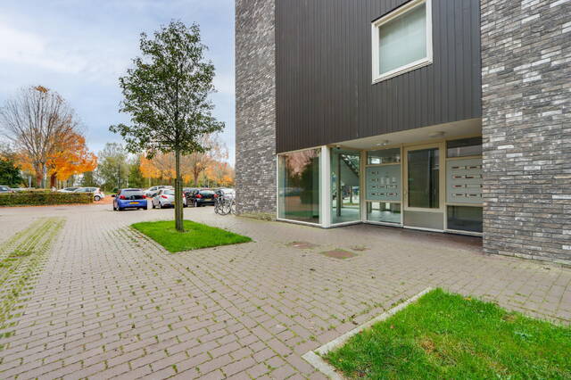 Gezamenlijke entree met een videofoon en brievenbus opstelling. Tevens bevindt zich hier het trappenhuis en de lift naar de bovengelegen verdiepingen. Op de begane grond heeft u de beschikking over een eigen berging voor de fiets en andere spullen. Rondom het gebouw is veel groen en water kenmerkend voor de wijk Floriande.
