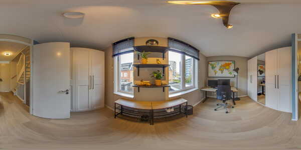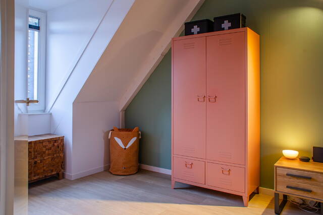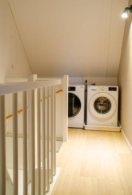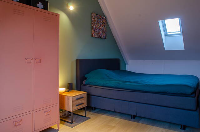 Op de tweede verdieping bevindt zich de derde slaapkamer die eveneens ruim van formaat is. Ook op deze verdieping vindt u een PVC-vloer met vloerverwarming als hoofdverwarming. Op de overloop is er voldoende ruimte voor het plaatsen van een wasmachine en droger. Daarnaast is er nog de technische ruimte met een WTW-systeem (Warmte Terug Win) en is er veel bergruimte gecreëerd, netjes weggewerkt achter schotten.