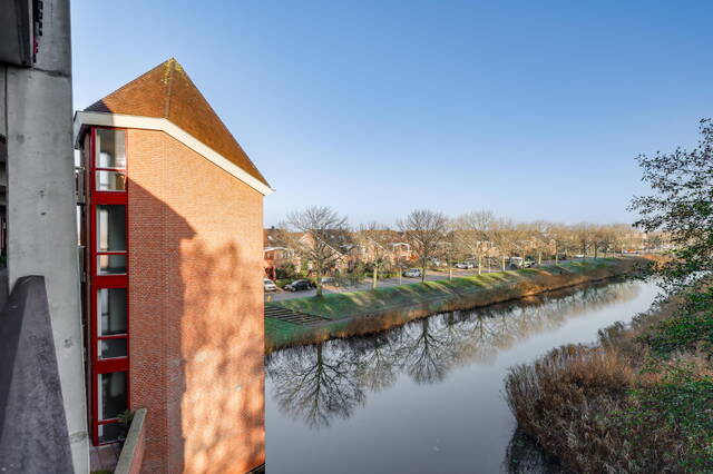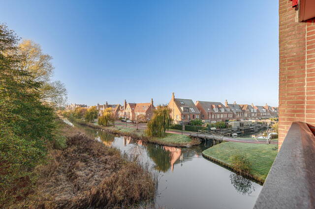 Het balkon ligt op het zonnige zuidwesten. Hier kun je heerlijk genieten van een kop koffie of thee terwijl je uitkijkt over het rustgevende water, de groene strook en de sfeervolle wijk Tudorpark met haar karakteristieke Engelse bouwstijl.