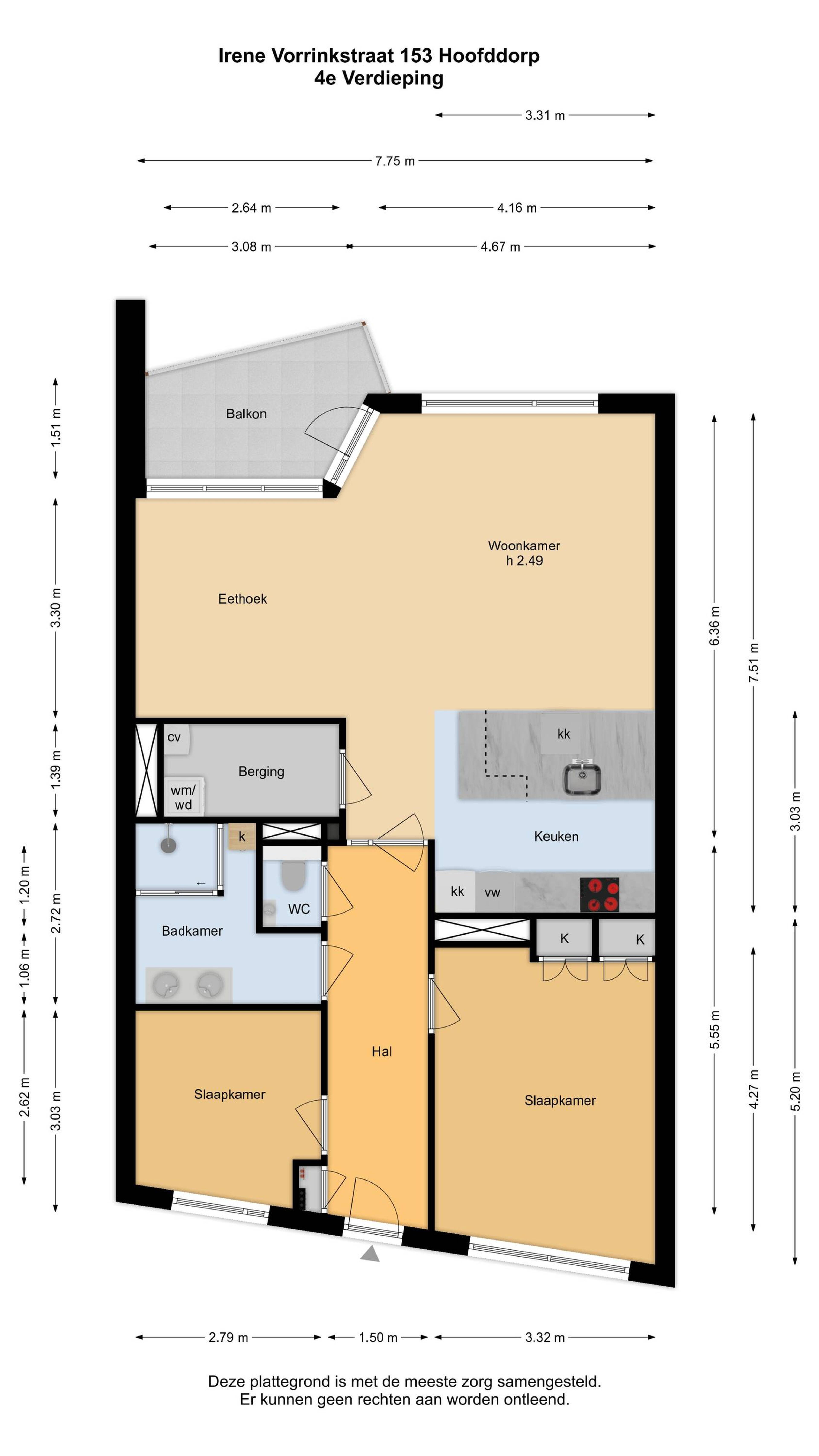 Achter de extra deur in de woonkamer vindt u de technische ruimte die tevens fungeert als berging annex wasruimte van ruim 4m².