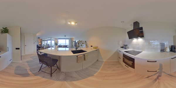De open keuken met spoeleiland (2024) is een echte eyecatcher en voorzien van alle gemakken. De keuken heeft een gezellige bar (ideaal voor een snel ontbijt of een borreltje) en is voorzien van een composieten werkblad, vaatwasser, koel/ vries combi, oven, magnetron en inductie kookplaat. Er is zelfs gedacht aan een heuse wijnklimaatkast! Kortom, u kunt hier met veel plezier koken terwijl de visite gezellig bij u zit.