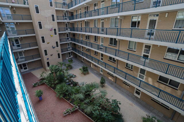 Via de trap of een van de hellingbanen loopt u naar de mooie, centrale entree van het gebouw. Aan de binnenzijde zijn de brievenbussen, het bellentableau en de intercom waardoor u in het gebouw heel veilig woont. Het atrium met prachtige, goed onderhouden binnentuin is een plek waar bewoners elkaar ontmoeten en de Vereniging van Eigenaren regelmatig activiteiten (niet verplicht) organiseert.
