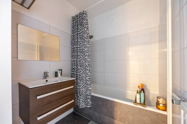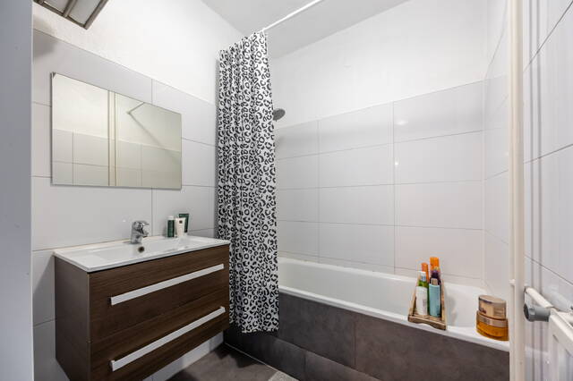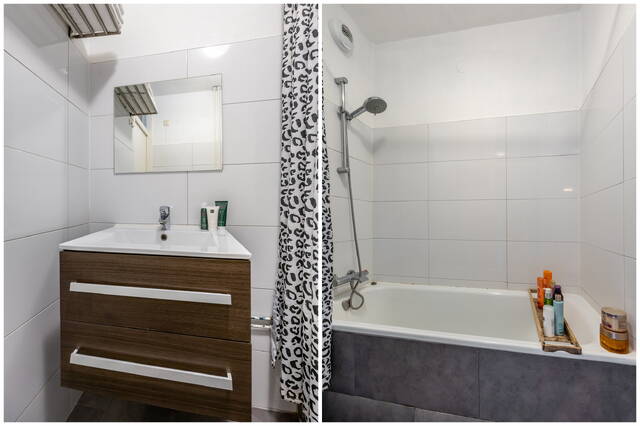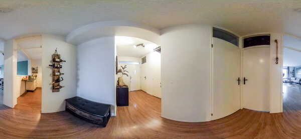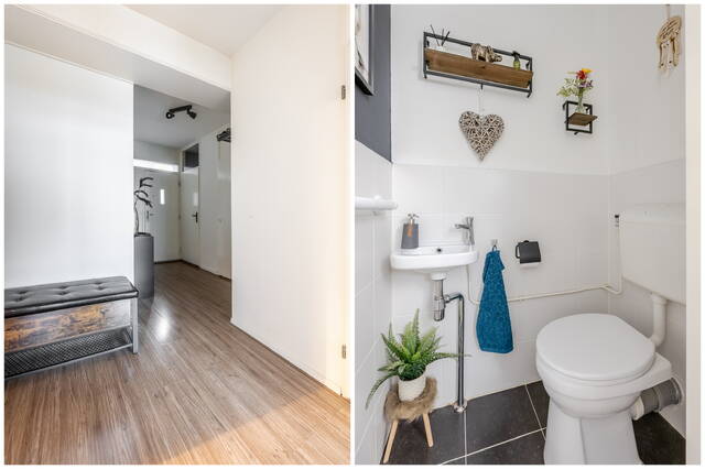 Bij binnenkomst kom je in de ruime hal. Aan de linkerzijde bevinden zich het separate toilet met fonteintje en de badkamer met ligbad. Daarnaast is er een bergkast met aansluiting voor de wasmachine. Vanuit de hal zijn de woonkamer, de halfopen keuken en de slaapkamer bereikbaar.