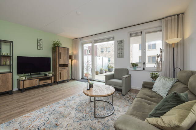 In het prachtige appartementencomplex “Het Ensemble” vindt u dit heerlijk lichte en luxe afgewerkte tweekamerappartement aan, gelegen op de 1e verdieping. De woning beschikt over een uniek zonnig terras van ruim 25m² gelegen op het zuidwesten, een eigen parkeerplaats op afgesloten terrein, een berging in de onderbouw én energielabel A. Een ideale combinatie van comfortabel wonen en een uitstekende ligging!