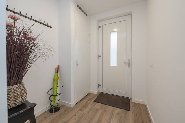 Via de verzorgde gezamenlijke entree met brievenbussen, bellentableau en gezamenlijke fietsenstalling bereikt u de lift en het trappenhuis. Vanuit hier zijn ook de bergingen en het afgesloten parkeerterrein met carports bereikbaar.