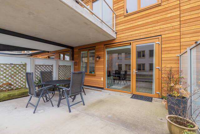 Via de woonkamer bereikt u het absolute pluspunt van deze woning: het heerlijk zonnige terras op het zuidwesten, afgewerkt met melkglas schuttingdelen aan beide zijkanten wat zorgt voor veel privacy. Een heerlijke plek om tot in de avond van de zon te genieten!