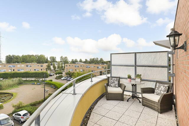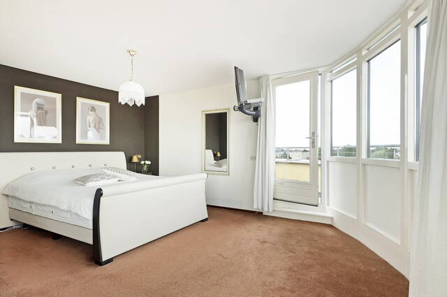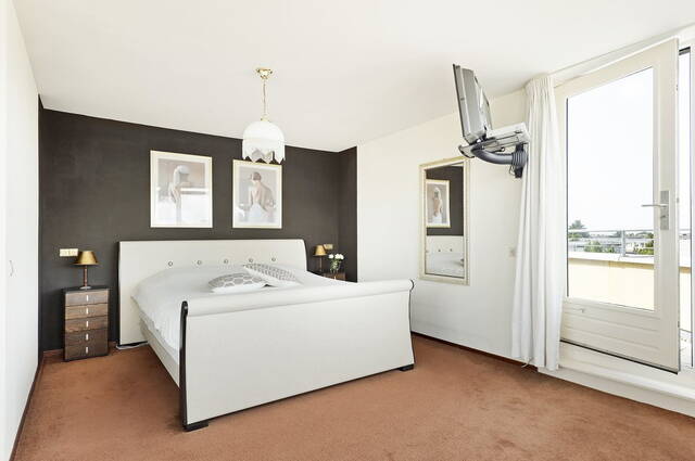 Op de bergruimte op de overloop bevindt zich een Remeha Avanta c.v. combiketel (2014) en de mechanische ventilatie. Er is tevens een zeer ruime en, door de grote ramen, zeer lichte slaapkamer met aan beide zijden van de woning een dakterras, waardoor er zowel ochtend- als avondzon is en er volop genoten kan worden van het prachtige uitzicht.