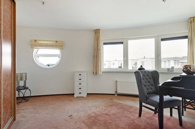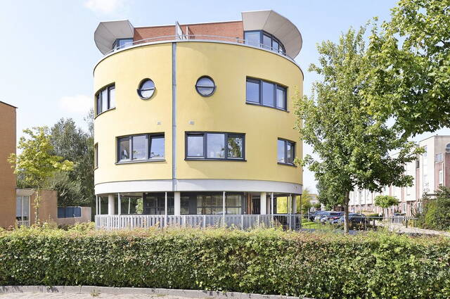 Deze royale, in 2000 onder architectuur van Hans Bik gebouwde, half-vrijstaande woning is gesitueerd op een kavel in Lisse. De uit vier woonlagen bestaande woning is enorm ruim, licht, half rond en je kunt al je meubels gemakkelijk positioneren. Deze unieke woning met maar liefst vier slaapkamers is boven het water gebouwd en biedt naast een prachtig uitzicht en diverse terrassen de gelegenheid tot parkeren op eigen terrein op de vlonder voor de woning.