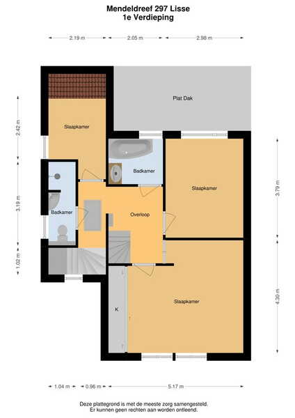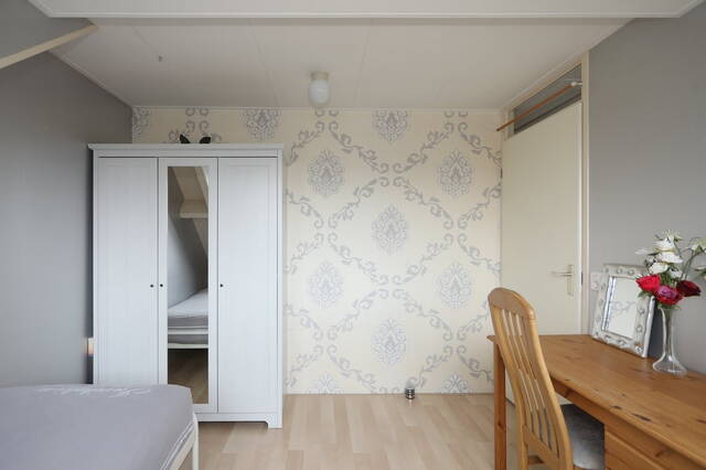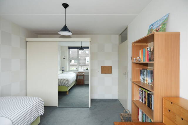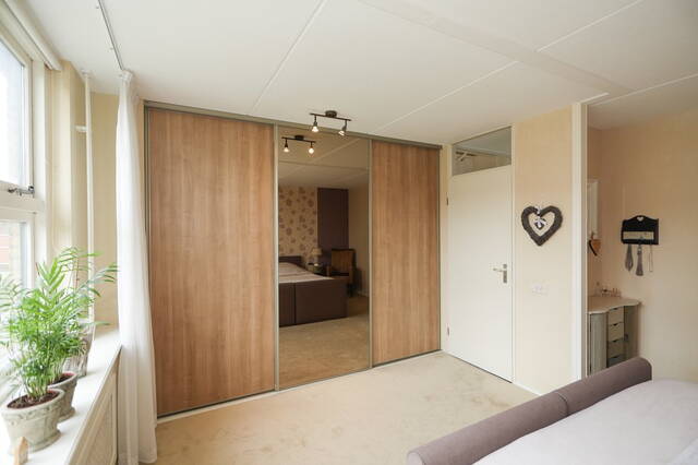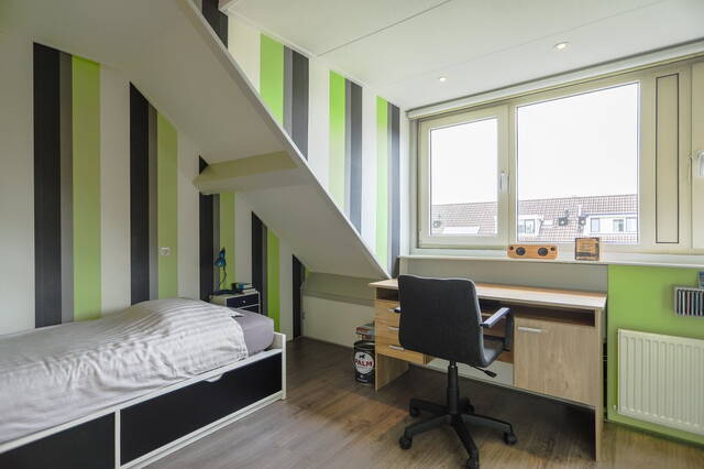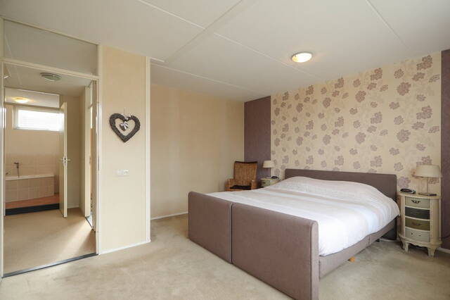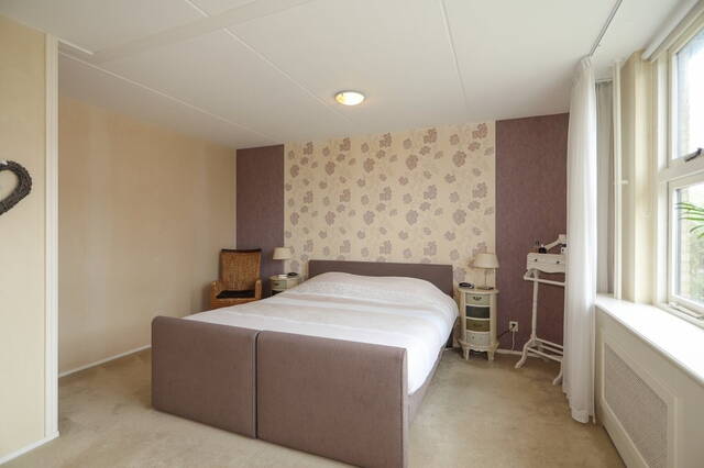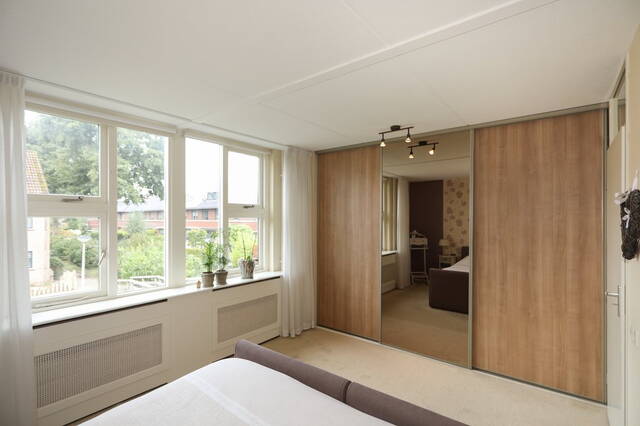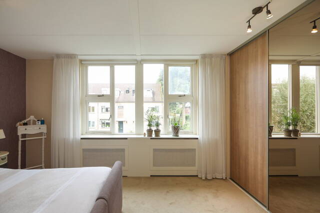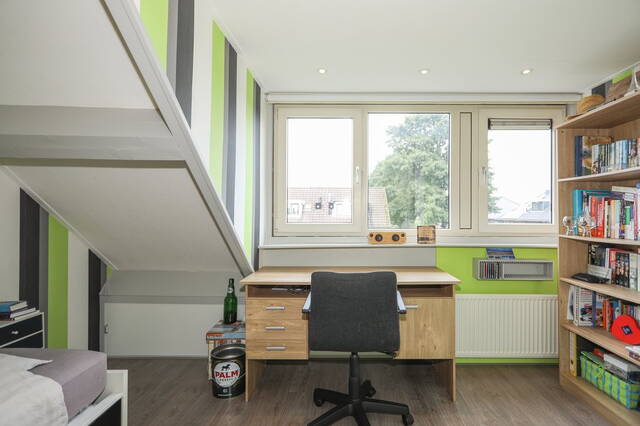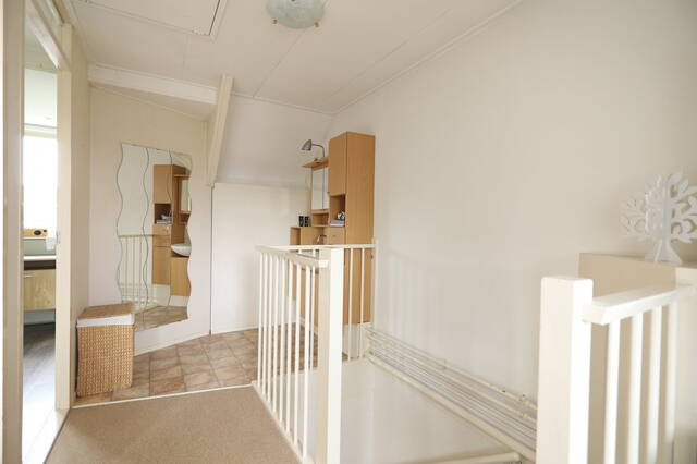 Vanaf de overloop zijn drie (mogelijk vier) slaapkamers en twee badkamers te bereiken. De hoofdslaapkamer aan de voorzijde is het resultaat van het samenvoegen van twee slaapkamers; heerlijk ruim en met een op maat gemaakte kastenwand voor je hele garderobe. Aan de achterzijde zijn twee leuke slaapkamers, waarvan één in gebruik is als werk-/studeerkamer. We hebben een alternatieve plattegrond laten maken waarop je kunt zien hoe de indeling is met vier slaapkamers; zo krijg je een goed beeld van de mogelijkheden van deze ruime woning.