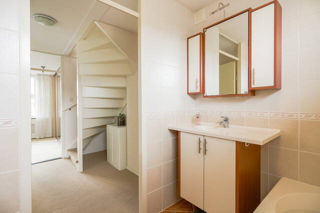 Uniek is dat er op deze verdieping twee badkamers zijn, ideaal als je regelmatig familie of vrienden op bezoek krijgt of als de kinderen in de ochtend lange tijd de badkamer bezet houden voordat ze naar school gaan. De badkamer aan de linkerzijde heeft een inloopdouche, tweede toilet en een wastafelmeubel. De badkamer aan de achterzijde is ingedeeld met een ligbad, wandradiator en een wastafelmeubel. Daarnaast tref in de nok van de zij-aanbouw een grote vliering (sta-hoogte) aan bereikbaar via een vlizotrap met nuttige vierkante meters aan bergruimte.