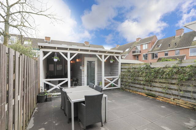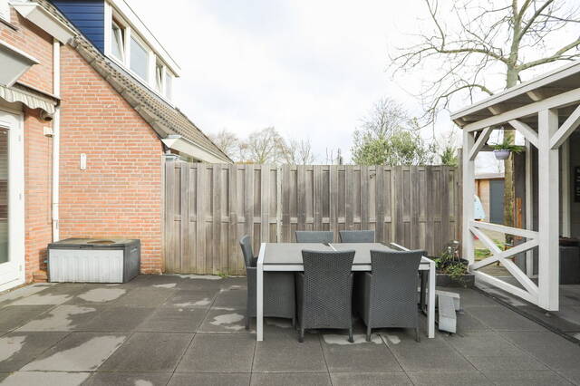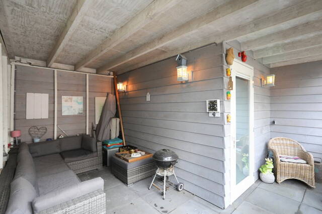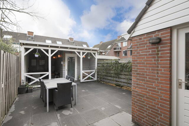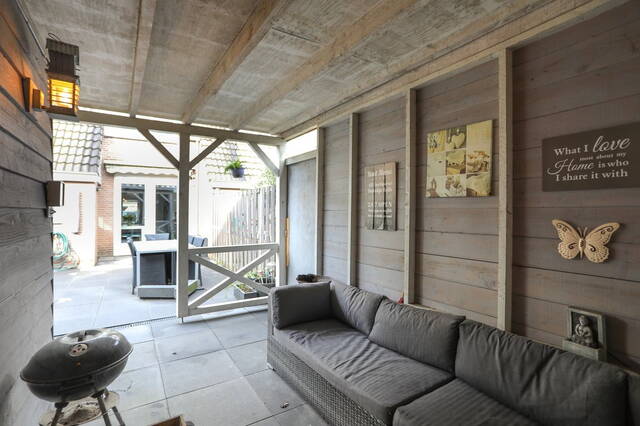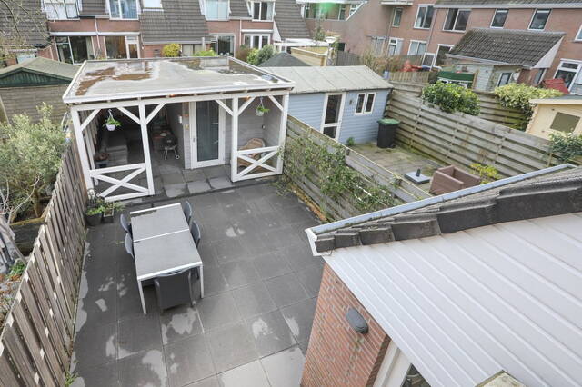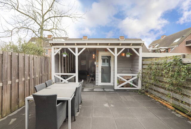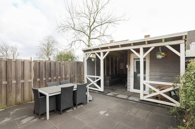 De fraai aangelegen achtertuin is voorzien van een overkapping doorgetrokken vanuit de berging. Dit geeft de mogelijkheid om ook in de winter met een paar heaters of een buiten open haard heerlijk te ontspannen. Er is genoeg openbare parkeergelegenheid voor de deur.