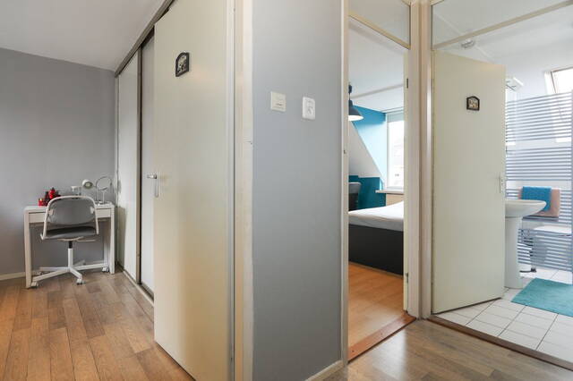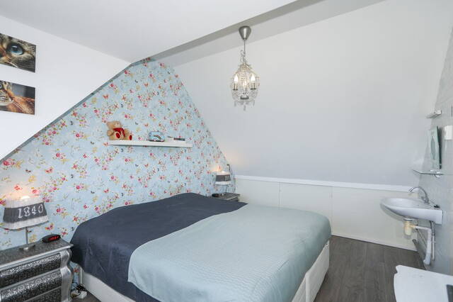 Een vaste trap breng u naar de vierde slaapkamer: de master bedroom. Voorzien van laminaatvoer. Naast deze slaapkamer bevindt zich nog een ruime berging en knieschotten. Op dit moment is hier de cv-ketel Remeha Avanta 28c CW4 ( 2012 ) opgesteld, er is eventueel ook ruimte om uw wasmachine en droger op te stellen.