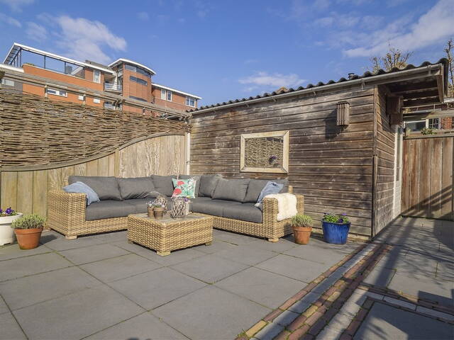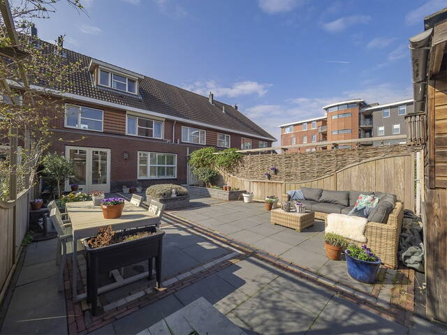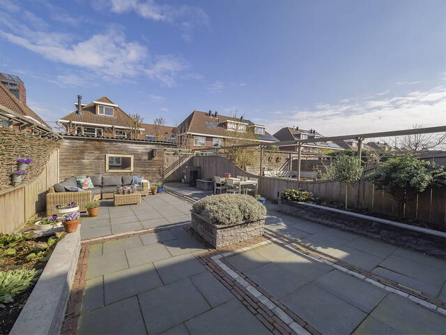 De achtertuin heeft een eigen ingang aan de achterzijde. Achterin de tuin is vanuit de bouw een ruime vrijstaande houten berging gerealiseerd.