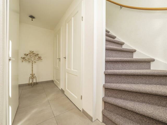 Entree, ruime hal met meterkast, toilet met fontein, gangkast en trapopgang naar de 1e verdieping.