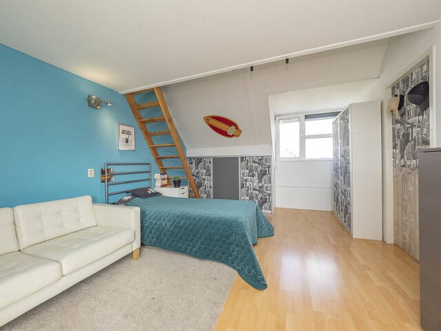 Ingedeeld in 2 ruime kamers, thans functioneel als slaapkamer over de gehele lengte van de woning en voorzien van 2 dakkapellen. En een was- c.q. werk- sportkamer met een aparte kast voor de C.V.- opstelling (vaillant eco TEC plus 2018) en mechanische ventilatie. Ook op de gehele zolder zijn de ramen voorzien van gemotoriseerde rolluiken.