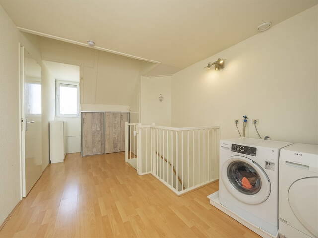 Een zeer ruime berging met vaste trap over de gehele breedte van de woning.