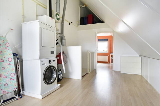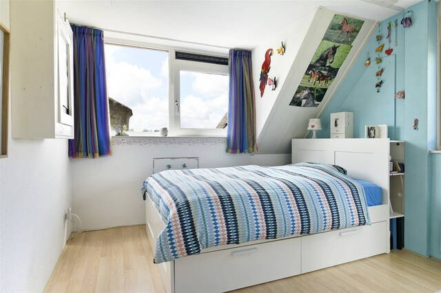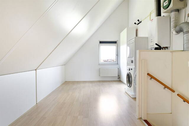 Op de bovenste verdieping van dit pareltje zijn een overloop, veel bergruimte achter knieschotten, kleine stevige vliering en een vierde slaapkamer. Hier is tevens de wasmachine- en droger aansluiting alsmede de mechanische afzuiging geïnstalleerd. Er is een mogelijkheid voor het plaatsen van een dakkapel waarmee je 2 of 3 slaapkamers kunt realiseren. De speelse schuine dakvlakken en de hoge nok maken deze verdieping een lust voor het oog.