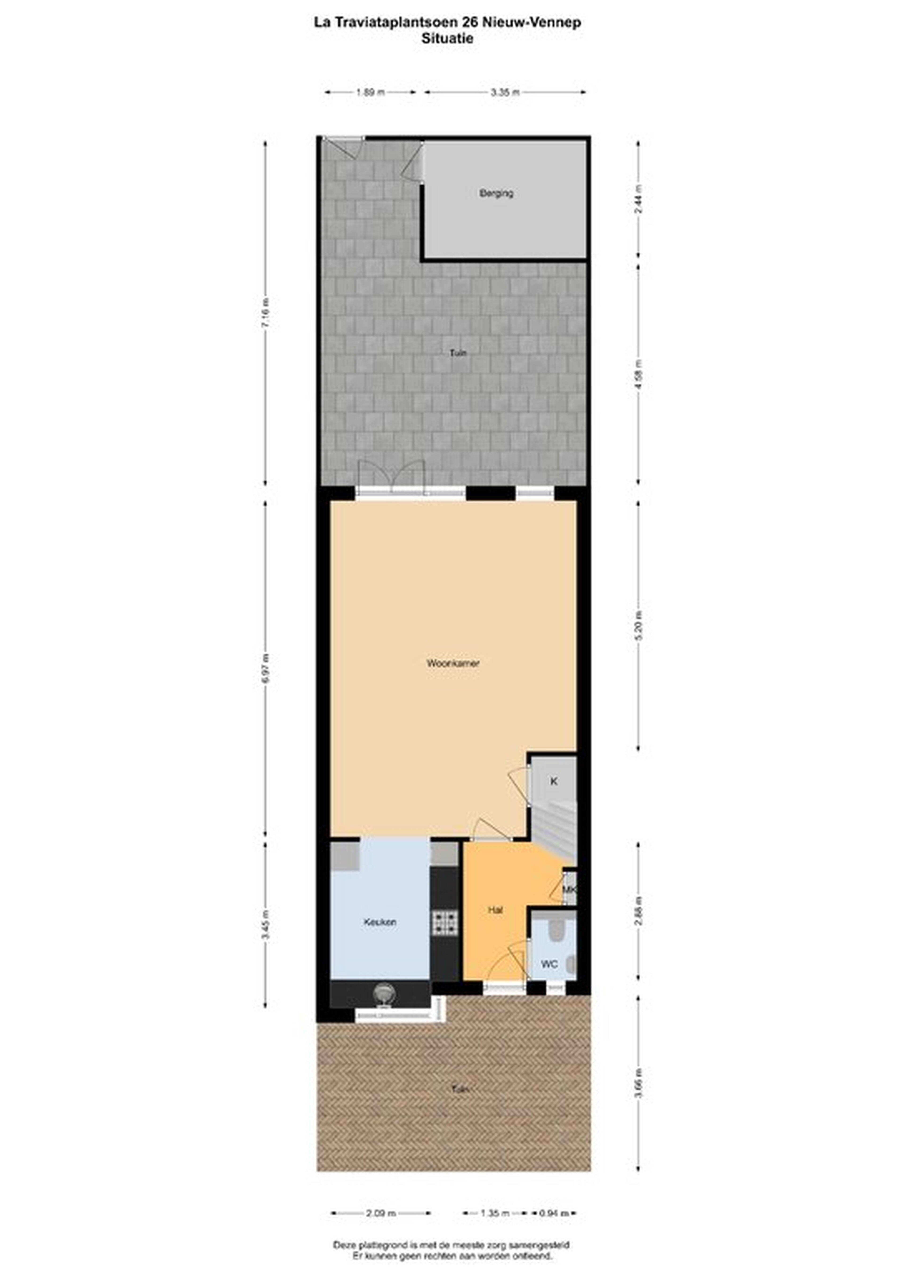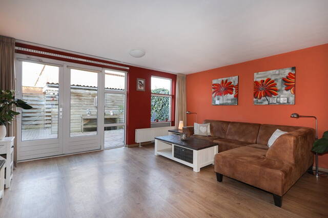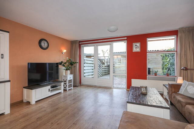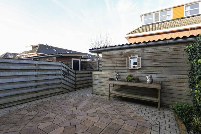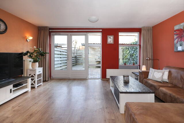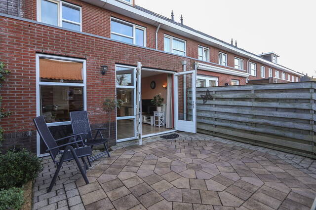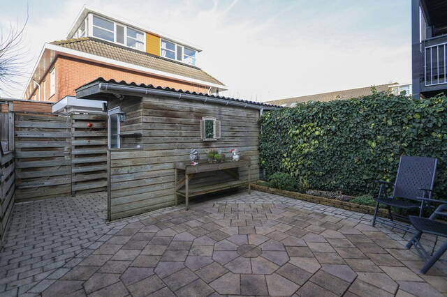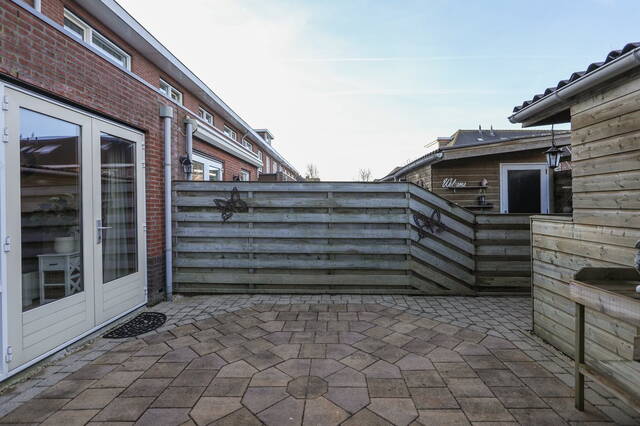 Via dubbele kunststof openslaande deuren in de achtergevel is de achtertuin op het noordwesten te bereiken. Tevens is er een achterom en een houten berging; handig voor tuinspullen, fietsen of eventueel zelfs uw motor. De tuin is geheel onderhoudsvrij. Dat scheelt dus heel wat werk!