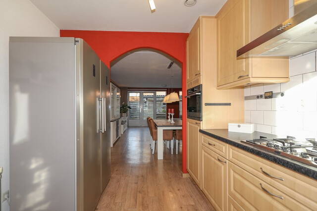 Via de verzorgde aangelegde voortuin komt u bij de entree van de woning, voorzien van toilet en meterkast. De meterkast is uitgebreid en beschikt over moderne groepen, slimme meters en glasvezel internetaansluiting. Toegang tot de ruime en zeer lichte tuingerichte woonkamer. De trapbergkast is bijzonder praktisch voor al uw voorraad en bijvoorbeeld kinderspeelgoed. Aan de voorzijde van de woning bevindt zich de keuken uitgevoerd in lichte kleurstelling, geplaatst in ruime L-opstelling en voorzien van diverse inbouwapparatuur zoals combi/magnetron, vaatwasser (2019), close-in boiler, 5- pits gaskookplaat met afzuigschouw en spoelbak.