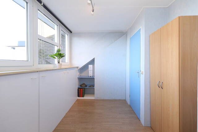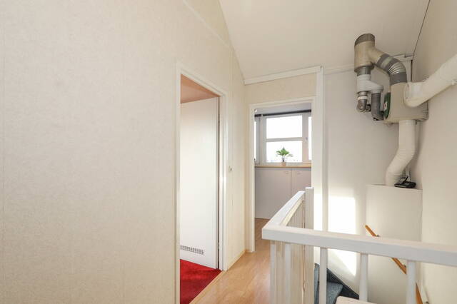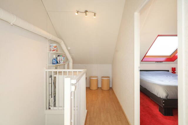 Op deze verdieping bevinden zich nog twee ruime slaapkamers met aan de achterkant een dakkapel over de gehele breedte van de woning voor heerlijk veel lichtinval. Op de vloer ligt een laminaat vloer. De opstelling voor cv-ketel (Remeha 2016) bevindt zich netjes weggewerkt in een hoek. Verder bevindt zich hier de aansluiting voor wasmachine en droger en de mechanische ventilatie. Tot slot treft u op deze verdieping veel bergruimte achter de knieschotten aan beide zijden van de woning en op een (kleine) vliering in de nok.