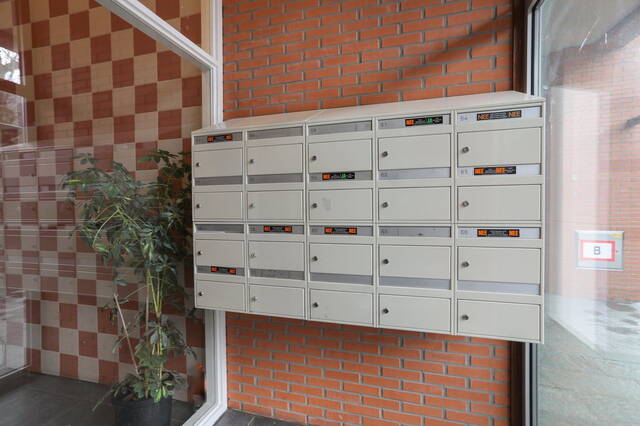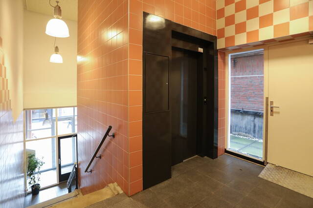 Centrale entree met bellenbord en brievenbussen. De verdiepingen zijn bereikbaar door middel van een lift maar ook via een trappenhuis.