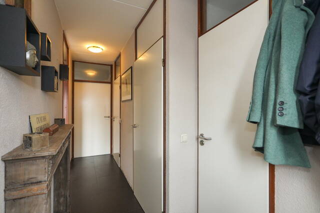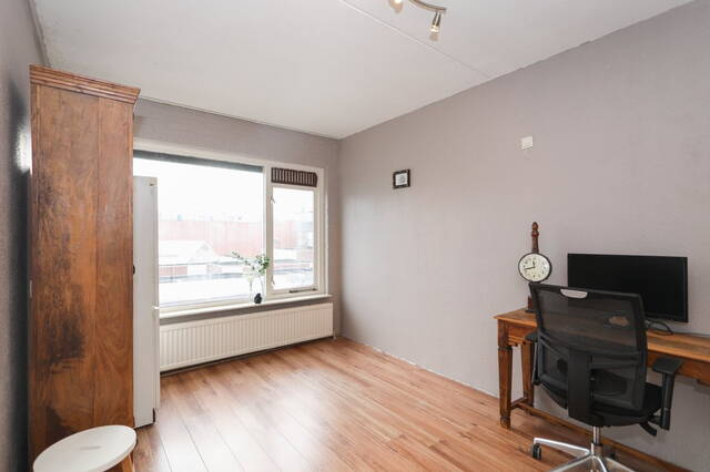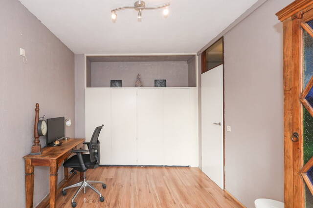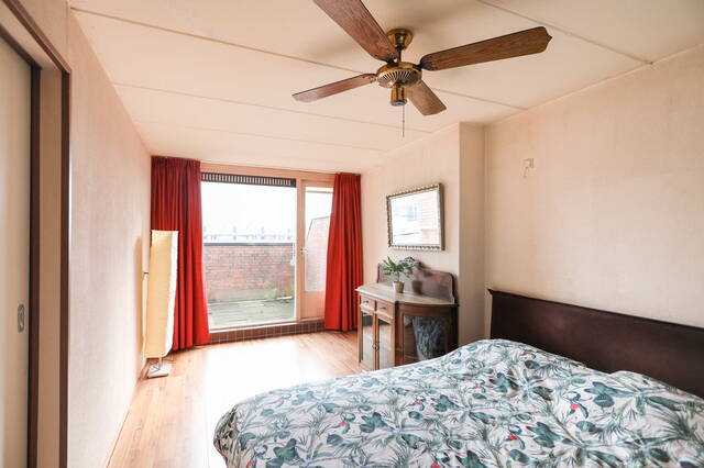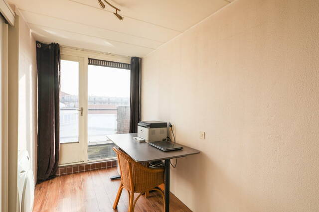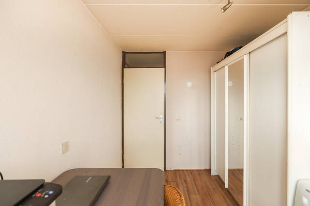 Links van de hal treft u een ruime kamer aan die je kunt gebruiken als slaapkamer. Hier heeft u uitzicht over het terras boven het winkelcentrum de Symfonie. In deze kamer treft u een inbouwkast aan waar u veel spullen in kwijt kunt.