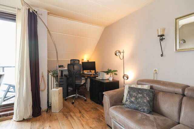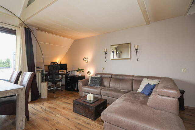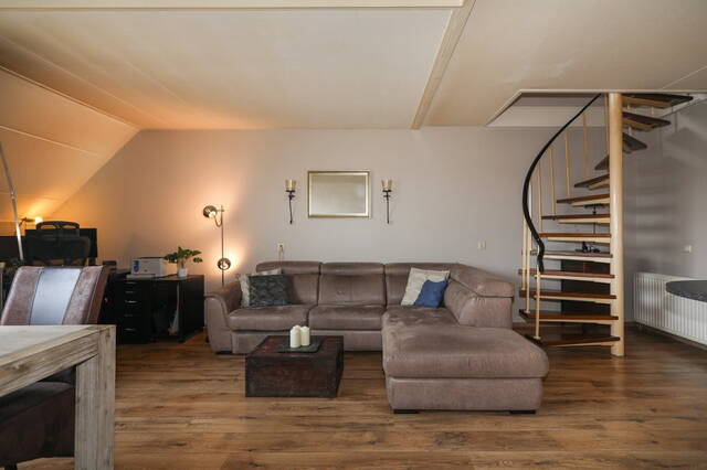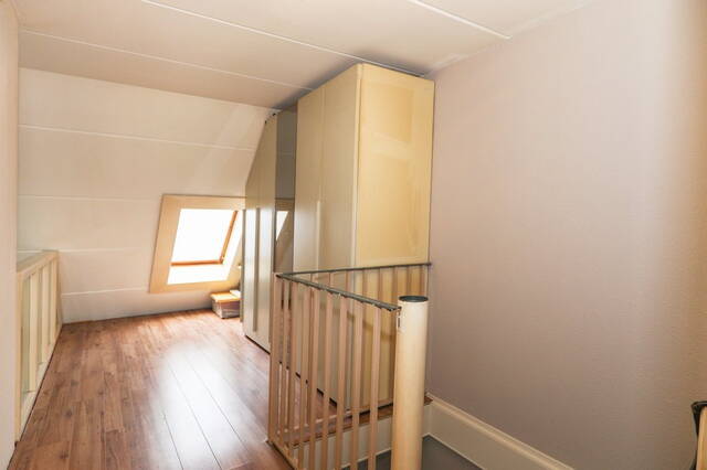 Vanaf de vide heeft u een mooi uitzicht op de woonkamer en ook hier is een dakraam. Alle vloeren zijn voorzien van laminaat de gang is voorzien van een mooie grote grijze tegelvloer.
