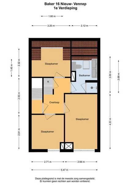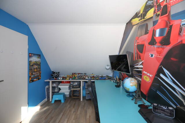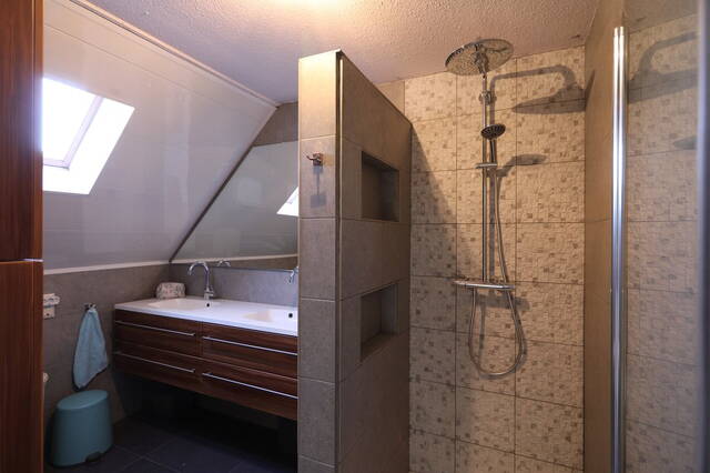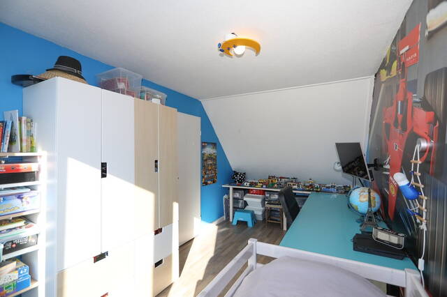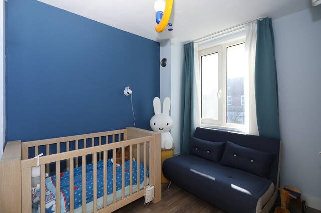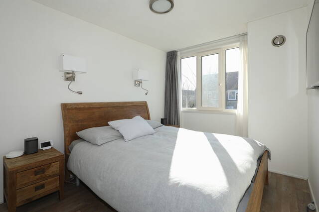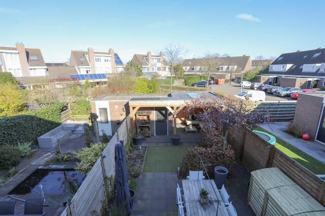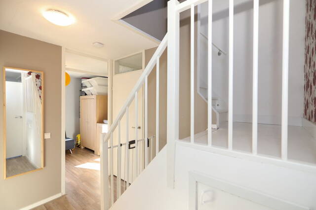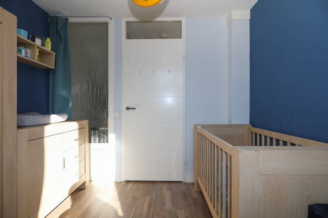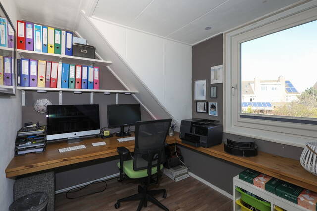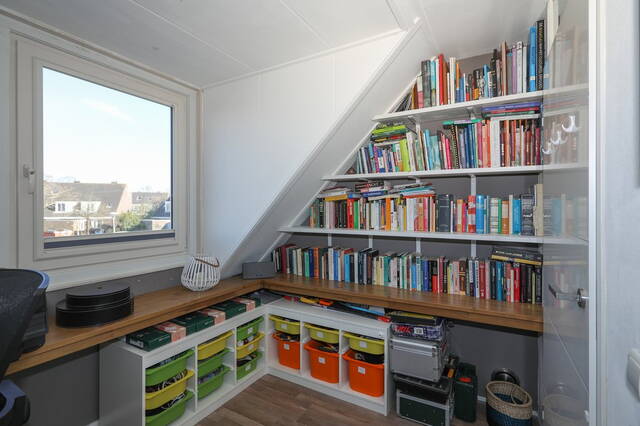 Eerste verdieping: Vanaf de overloop zijn drie slaapkamers en de badkamer te bereiken. Aan de voorzijde zijn twee slaapkamers, de masterbedroom en een kinderkamer en aan de achterzijde is de derde slaapkamer, thans in gebruik als werkkamer. Op alle slaapkamers ligt een nette laminaatvloer. De moderne badkamer (2018) is ingedeeld met een ruime inloopdouche, tweede toilet en een wastafelmeubel met twee wastafels met bergruimte en een opbergkast. Ook op de overloop onder de trap is opberguimte. Tweede verdieping: Vanaf de overloop, waar een airconditioning (2009) is bevestigd is er een ruime slaapkamer en een ruimte voor de heteluchtverwarming en een wasruimte voor de wasmachine en droger. Er is tevens een kleine ingebouwde opbergkast. Deze verdieping is voorzien van een laminaatvloer.