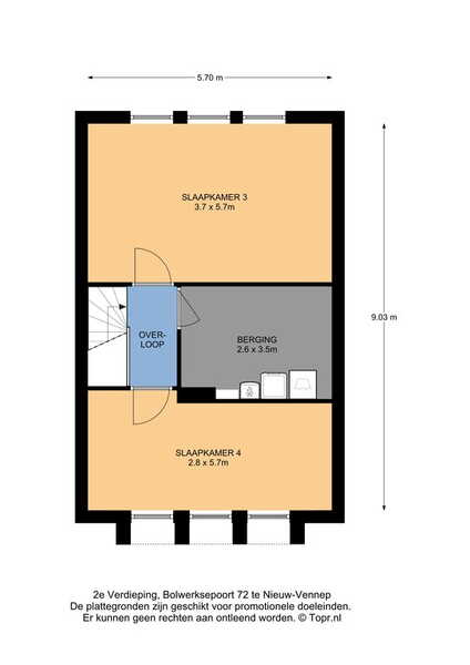 De woning heeft een volwaardige tweede verdieping met een overloop, twee slaapkamers en een berging/wasruimte. In de berging zijn de aansluitingen voor de wasmachine en droger; ook hangen hier de cv-ketel, de WTW-ventilatieunit en de omvormer van de zonnepanelen.