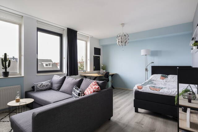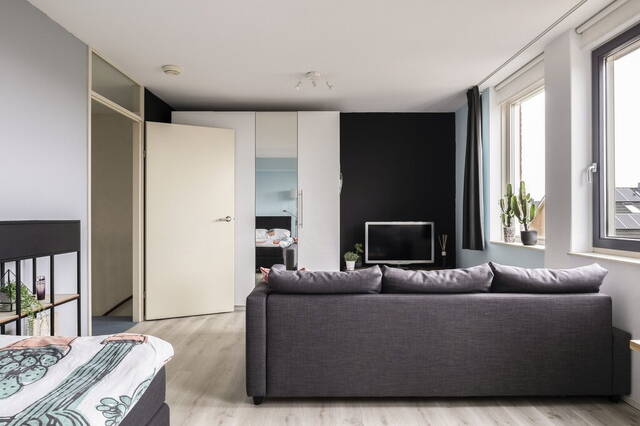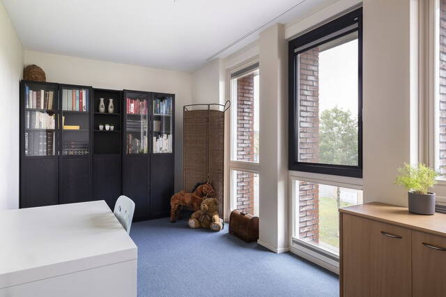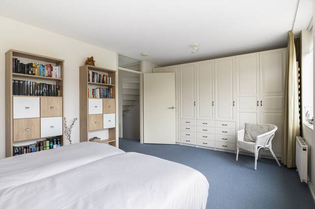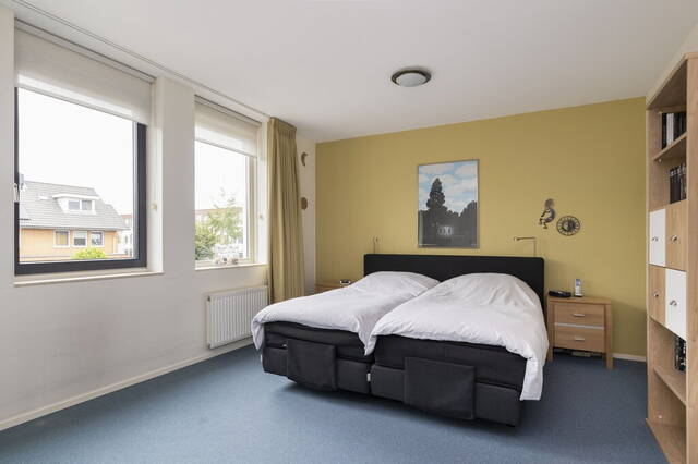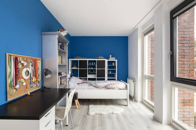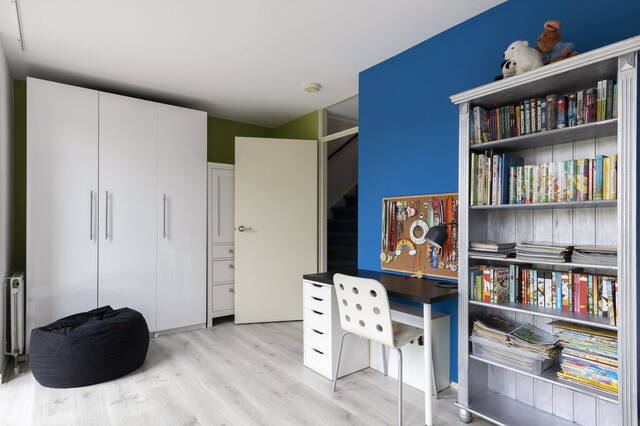Qua afmetingen zijn de slaapkamers identiek aan de kamers op de eerste verdieping; heerlijk ruim. De kamer aan de voorzijde is ingericht als werkkamer en heeft tapijt op de vloer, verduisterende plisségordijnen (2019) en drie screens (zonwering). Aan de achterzijde is de slaapkamer ingedeeld met een slaap-, werk- en een zithoek. Frisse kleuren op de muren en de laminaatvloer vormen in deze kamer een mooi geheel.