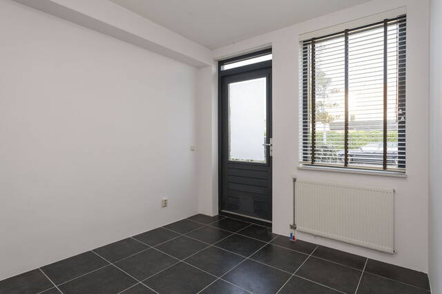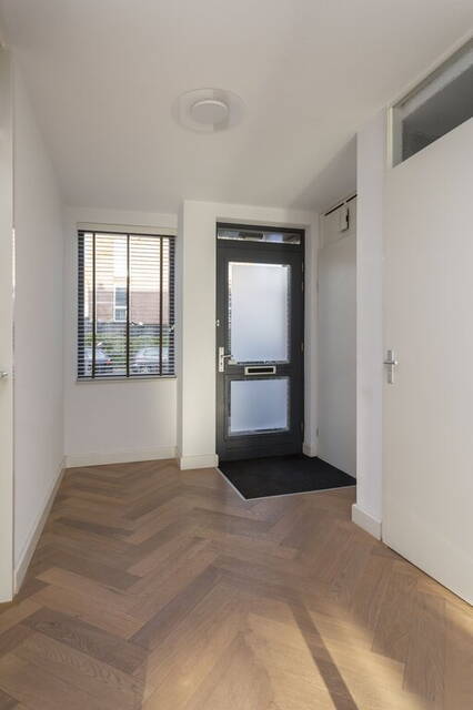 De aan de voorzijde betegelde en onderhoudsvriendelijke tuin biedt plaats voor maar liefst 2 auto’s. De achtertuin grenst aan het Herfstpark.