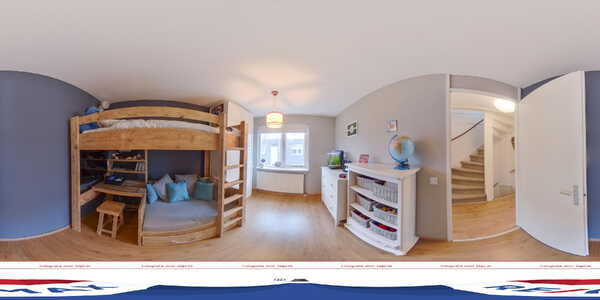 Op de eerste verdieping zijn de overloop, drie slaapkamers en de badkamer, waarvan twee voorzien zijn van een rolluik. Twee kamers zijn ingericht als kinderkamer en de derde kamer is de kastenkamer. Op zowel de overloop als de slaapkamers ligt laminaat op de vloer.