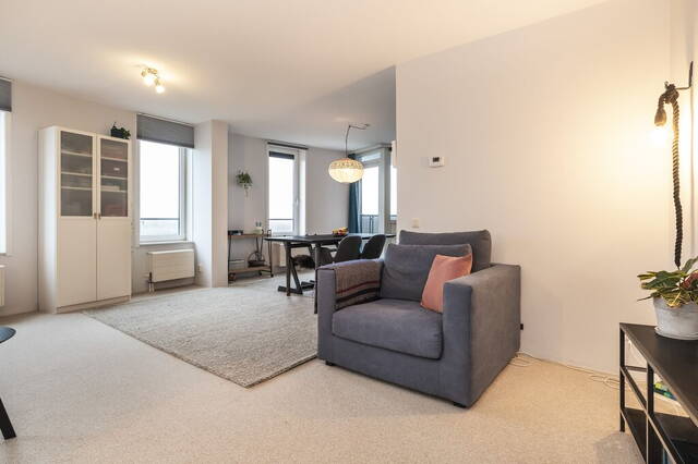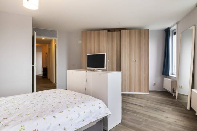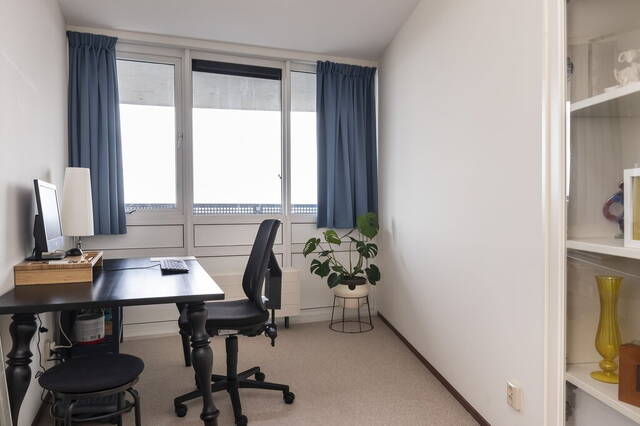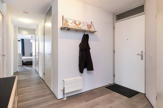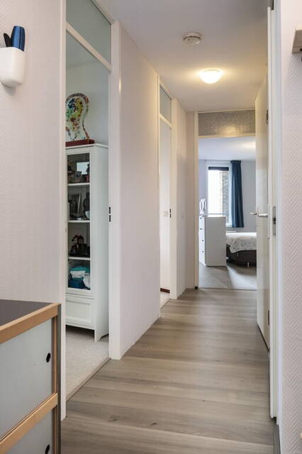 Met een druk op de knop sluit de liftdeur en ga je comfortabel naar de zevende verdieping. Vanuit de gezamenlijke hal kom je in de hal van het appartement met aan de linkerzijde de meterkast en rechts om de hoek is de cv-ruimte. De cv-ketel is vernieuwd 2019, een van de voordelen van dit fantastische appartement.