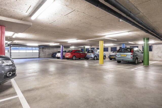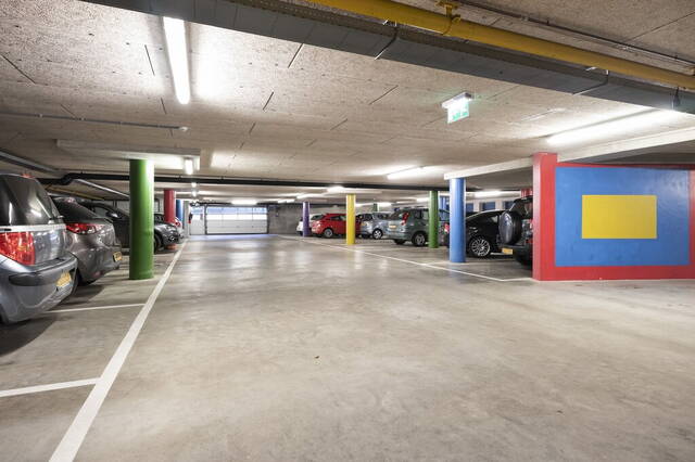 Appartementengebouw Watermunt heeft een fantastische uitstraling en wordt omringd door water en groen. Er is een brede toegang tot de parkeergarage en het buitenterrein oogt zeer verzorgd. De gezamenlijke entree is te bereiken via een trap en een hellingbaan. Vanuit de gezamenlijke hal kun je met de lift en trap naar de parkeergarage en de bovengelegen woonverdiepingen. Dit appartement heeft twee parkeerplaatsen en een berging; ruimte genoeg voor twee auto’s én de fietsen.