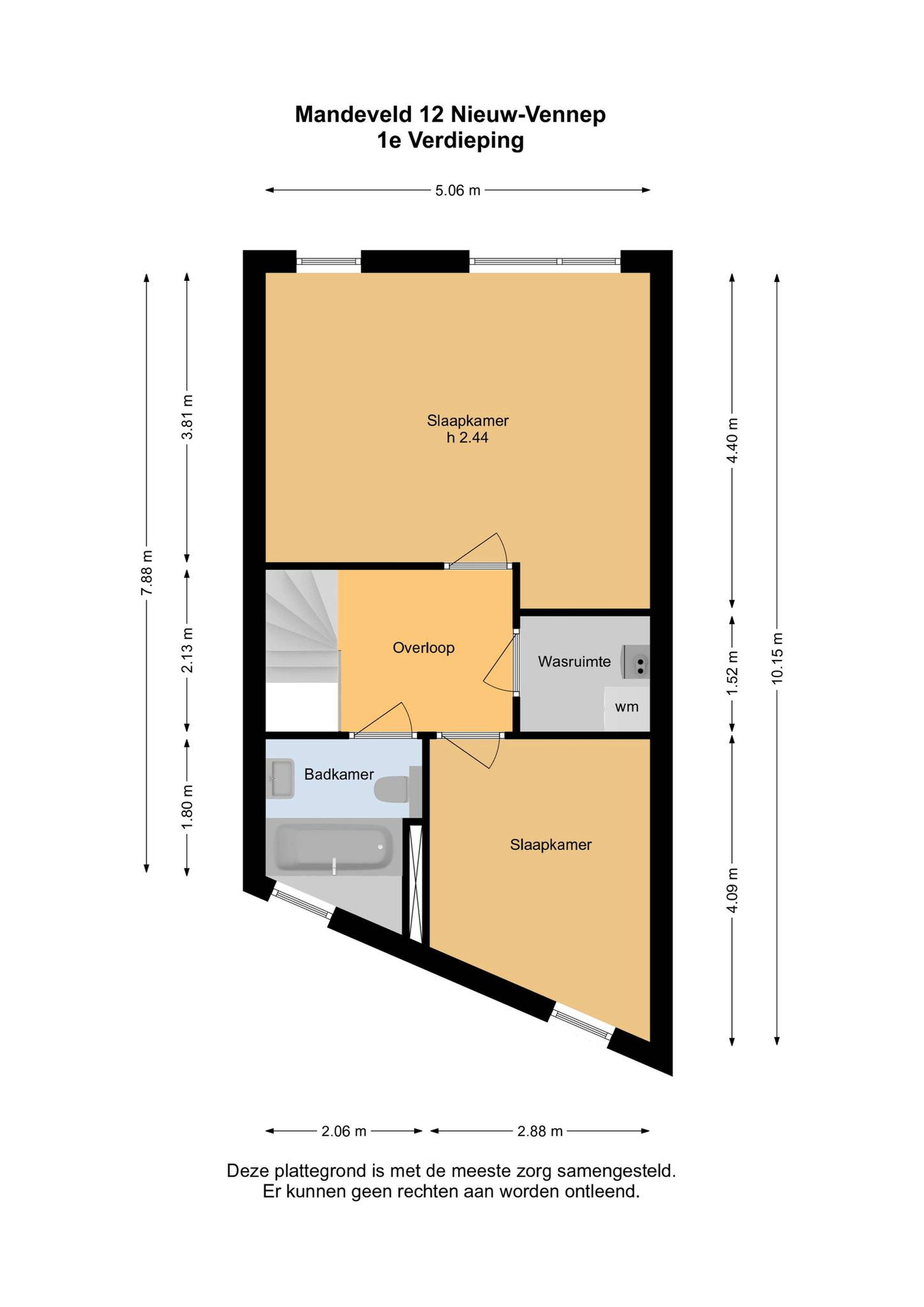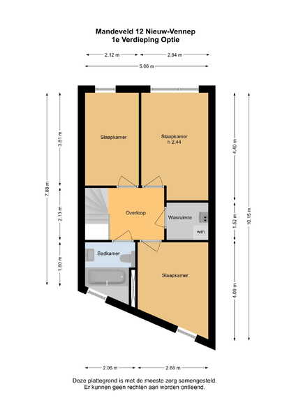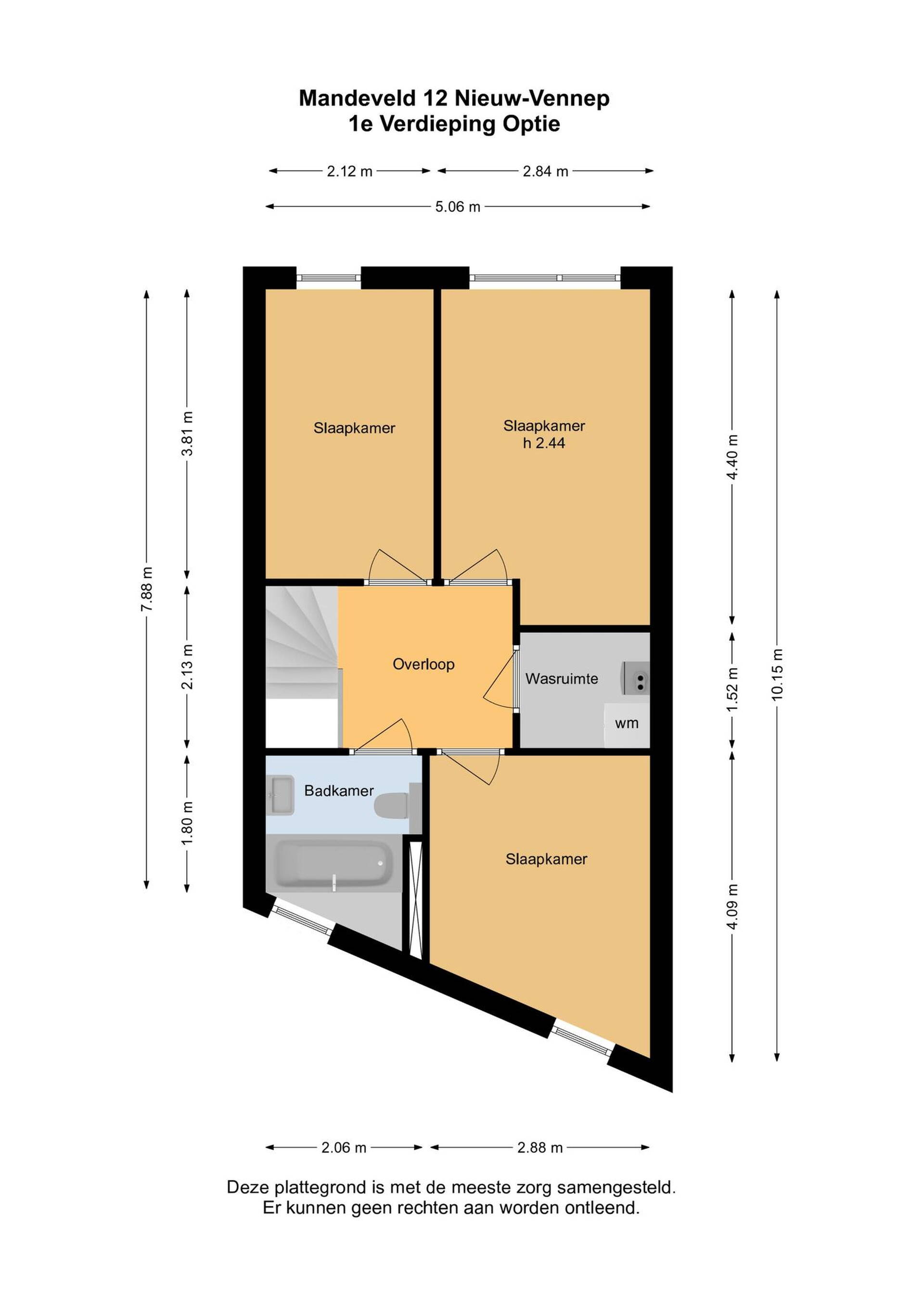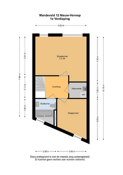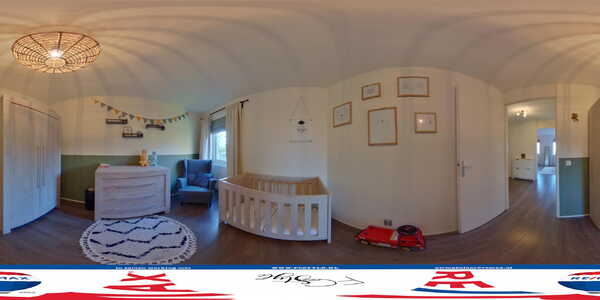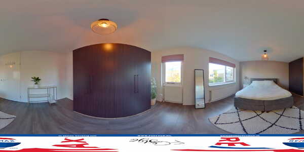 Vanaf de overloop zijn twee ruime slaapkamers, de badkamer en de wasruimte/berging te bereiken. Bent u op zoek naar een woning met drie slaapkamers? We hebben een plattegrond laten maken waarop de slaapkamer aan de achterzijde is gesplitst. Nu is dit de meer dan 5 meter brede masterbedroom met een handige nis voor de garderobekast. Aan de voorzijde is de tweede, speels vormgegeven slaapkamer die is ingericht als kinderkamer. Op beide slaapkamers en de overloop ligt een mooie, donkere laminaatvloer.