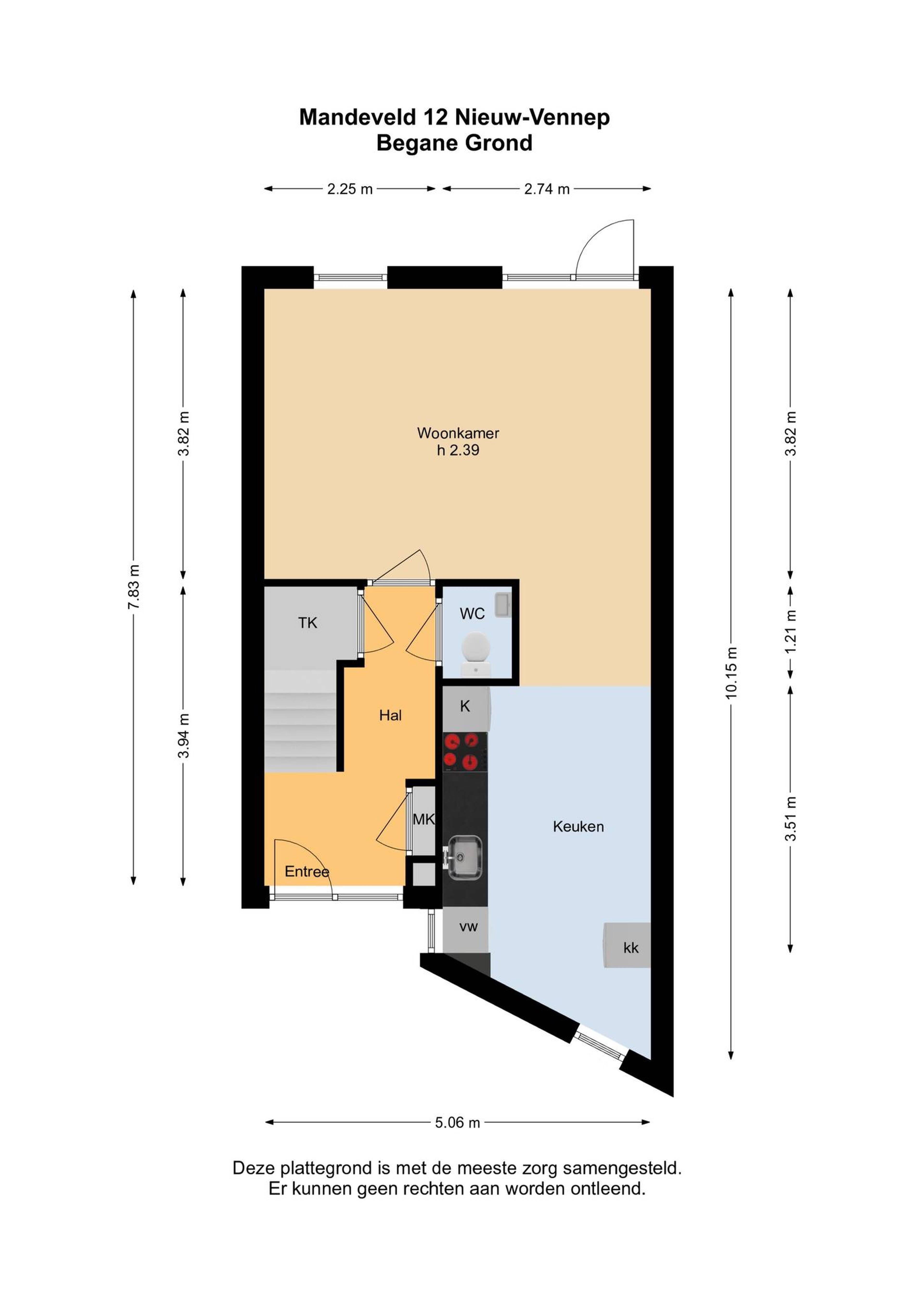 Aan de voorzijde is de deels overdekte entree van deze instapklare, gezellige woning. Vanuit de ruime hal kunt u de woonkamer, meterkast, toiletruimte met fonteintje en de bergkast onder de trap bereiken. In 2019 is de pvc-vloer gelegd, de grote mat zorgt ervoor dat de pvc-vloer schoon en droog blijft.
