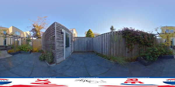 Vanuit de woonkamer stapt u de tuin in, gesitueerd op het noordoosten. De tuin is grotendeels bestraat waardoor er twee terrassen zijn. De pergola is begroeid en in de borders staan diverse lage planten en struiken. Achter in de tuin is de poort naar de steeg en de houten schuttingen zorgen voor privacy. De flinke berging biedt ruimte aan de fiets en het tuin-/klusgereedschap.