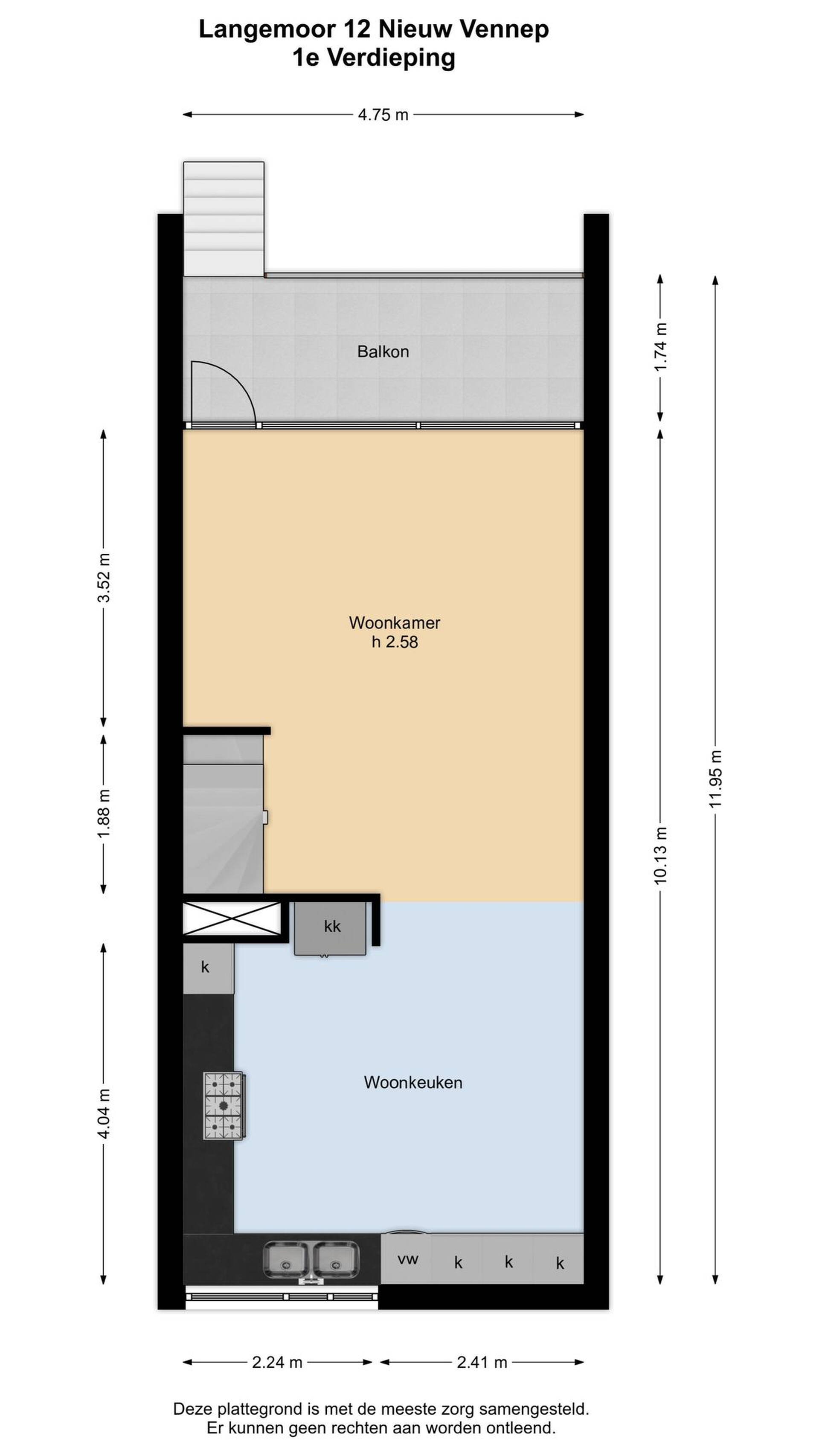 De woonkamer, woonkeuken en het balkon bevinden zich op de eerste verdieping. Met een totale oppervlakte van circa 43 m² zijn de woonkamer en keuken van flink formaat. Grote ramen aan de zuidwestkant zorgen voor veel licht in de woonkamer en in de woonkeuken geniet u volop van de ochtendzon. Onder de tegelvloer ligt vloerverwarming en vanuit de woonkamer is het balkon te bereiken.