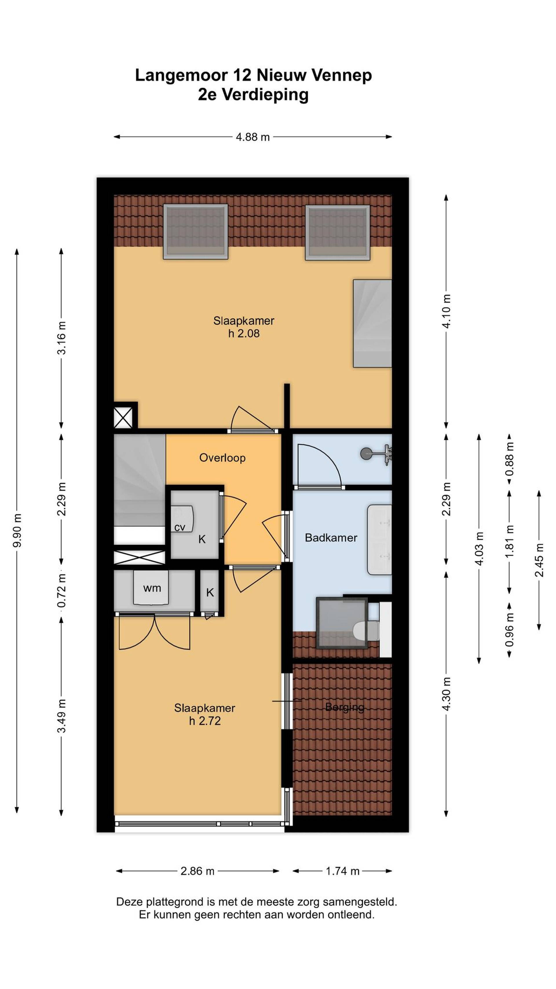 Aan de achterzijde is de ruime master bedroom met twee grote dakramen en de slaapkamer aan de voorzijde biedt veel bergruimte, onder andere voor de wasmachine en droger. Een vaste trap in de master bedroom geef toegang tot de zolder, in gebruik als kleedruimte.